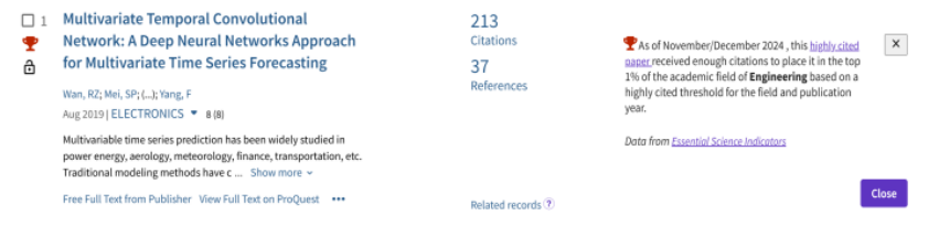 ESI(基本科学指标数据库Essential Science Indicators的简称)是由世界著名的学术信息出版机构美国科技信息所于2001年推出的衡量科学研究绩效、跟踪科学发展趋势的基本分析评价工具。其中ESI高被引论文(Highly Cited Paper)指发表于过去十年内某学科领域相同发表年论文中被引用次数排名在前1%以内的论文。目前,ESI高被引论文论文已成为当今世界范围内普遍用以评价高校、学术机构、国家地区国际学术水平及影响力的重要评价指标工具之一。