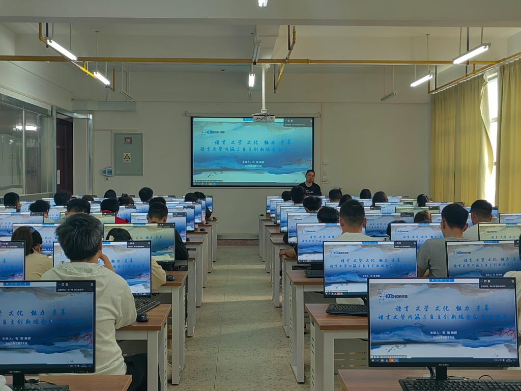 读书班统一部署要求,5月11日下午,部分学生代表学生在崇真楼南楼5022会议室观看了两场线上主题教育:“语言文学内涵与自主创新观念和意识培养”和“服务高水平科技自立自强,积极服务地方经济和行业发展”。