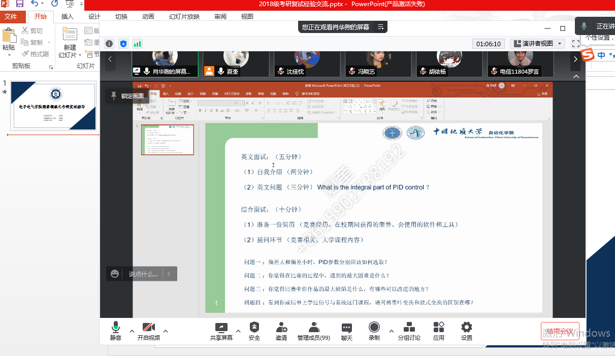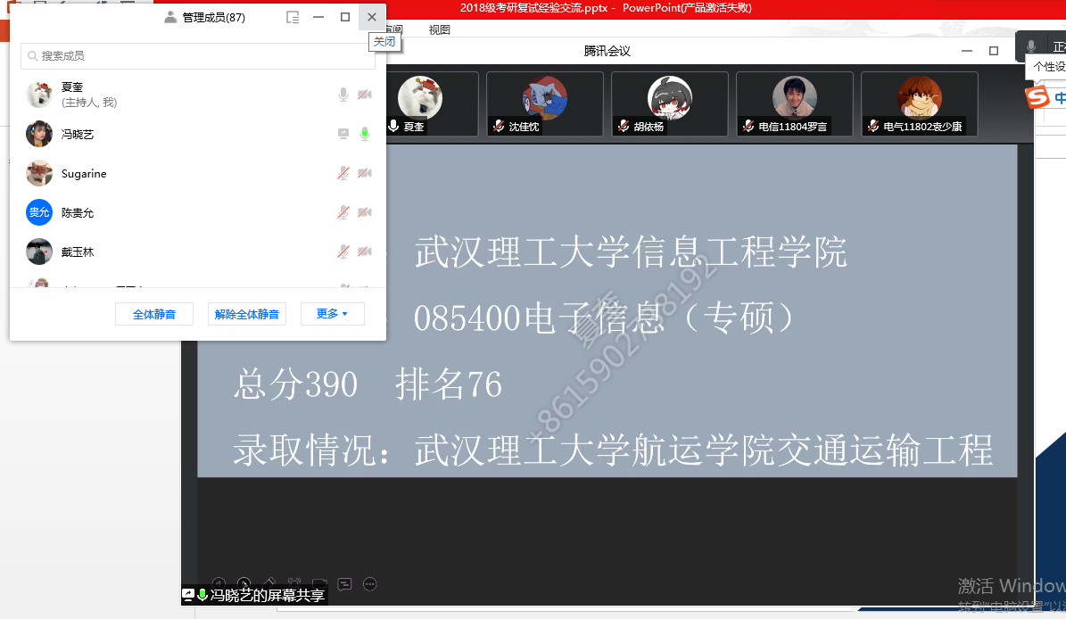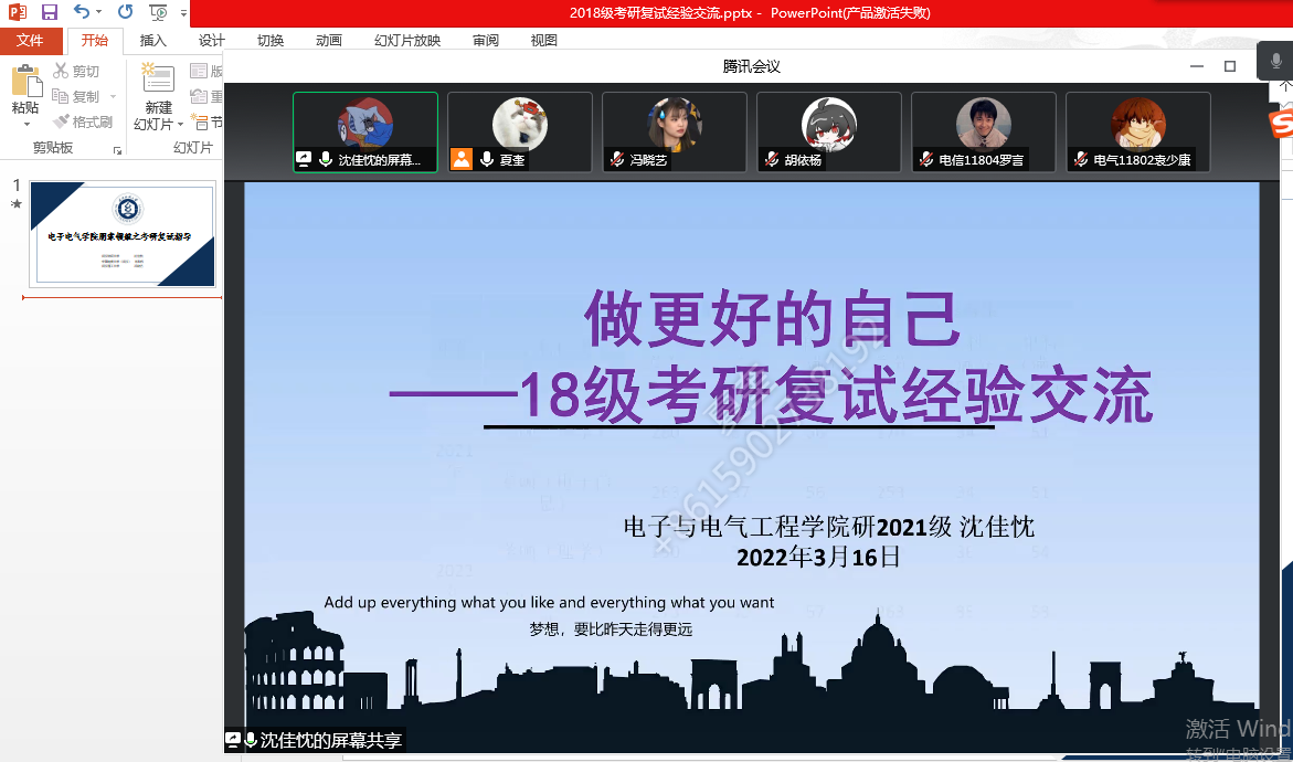 为了帮助考研的同学更加详细地了解考研复试的相关事宜和注意事项,助力学生成长成才。3月16日上午,天下娱乐 举办了线上考研复试交流会,来自天下娱乐 2017级学生代表、中国地质大学研究生肖华煦,武汉理工大学研究生冯晓艺以及本校研究生沈佳忱做朋辈领航,分享交流考研复试经验,会议由毕业班年级辅导员夏奎主持,2018级全体考研学生参加了会议。