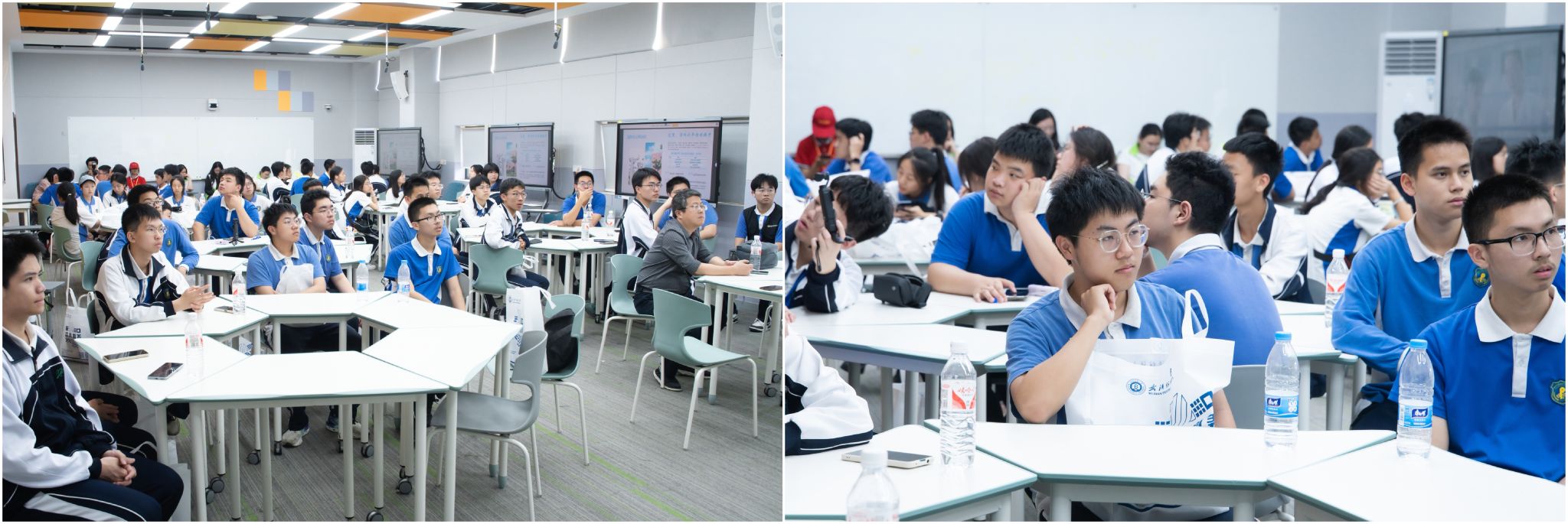 实验室、9号教学楼智慧教室、环湖绿道、图书馆、体育馆、游泳馆等场所。边走边看、边听边问,每到一处,同学们与志愿者交流,和教授们沟通,近距离接触高精尖的仪器设备,亲身体验了浓厚的历史底蕴和文化魅力,领略了舒适和谐、生机盎然的自然环境,提升了对高等学府的无限向往和科学技术的美好憧憬。