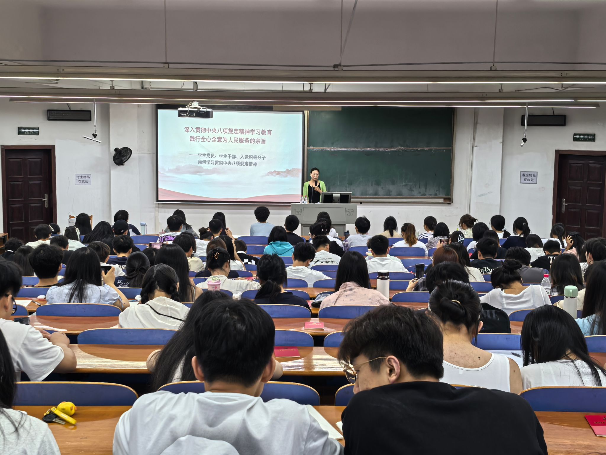 教师党员代表、全体辅导员、全体学生党员、入党积极分子讲述了一堂生动的深入贯彻中央八项规定精神学习教育专题党课。