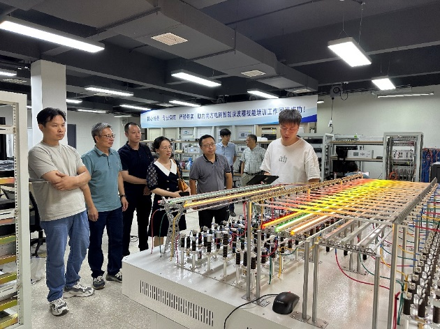 教师参观了凯默电气的研发实验室、智能录波器培训基地及电网微动模平台。在参观过程中,研发工程师详细介绍了电网微动模平台的组成、功能、应用场景,并模拟演示了电网故障推演过程。通过实地调研观摩,双方就就如何进一步发挥平台作用、促进学生实践能力提升提出了宝贵意见。