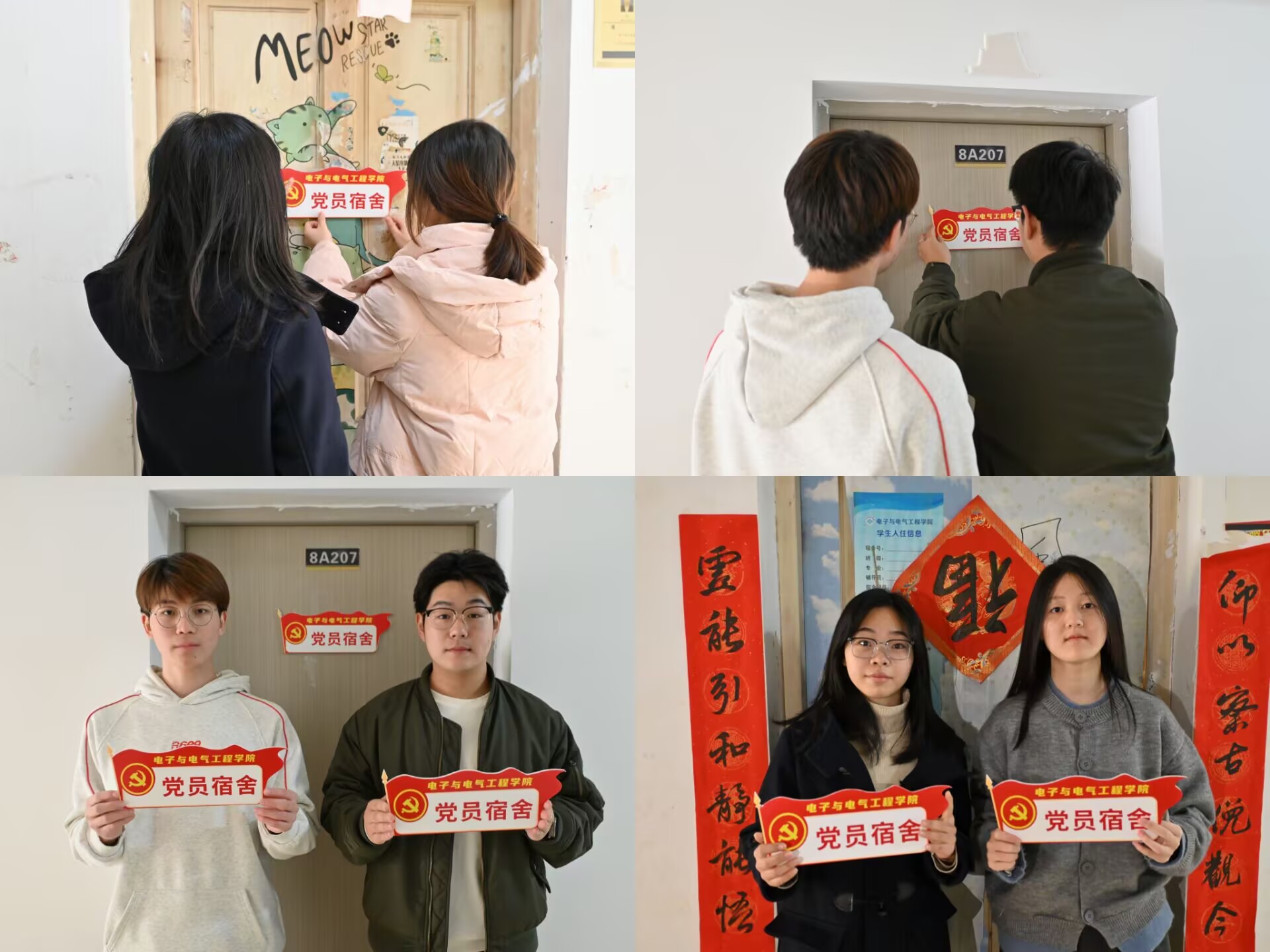 师生党员一同张贴“党员宿舍”标识牌,红色的“党员宿舍”标牌在宿舍门上格外醒目,既让党员们时刻牢记身份与使命,也为其他同学树立了可感可学的身边榜样,推动形成“比学赶超”的良好氛围。