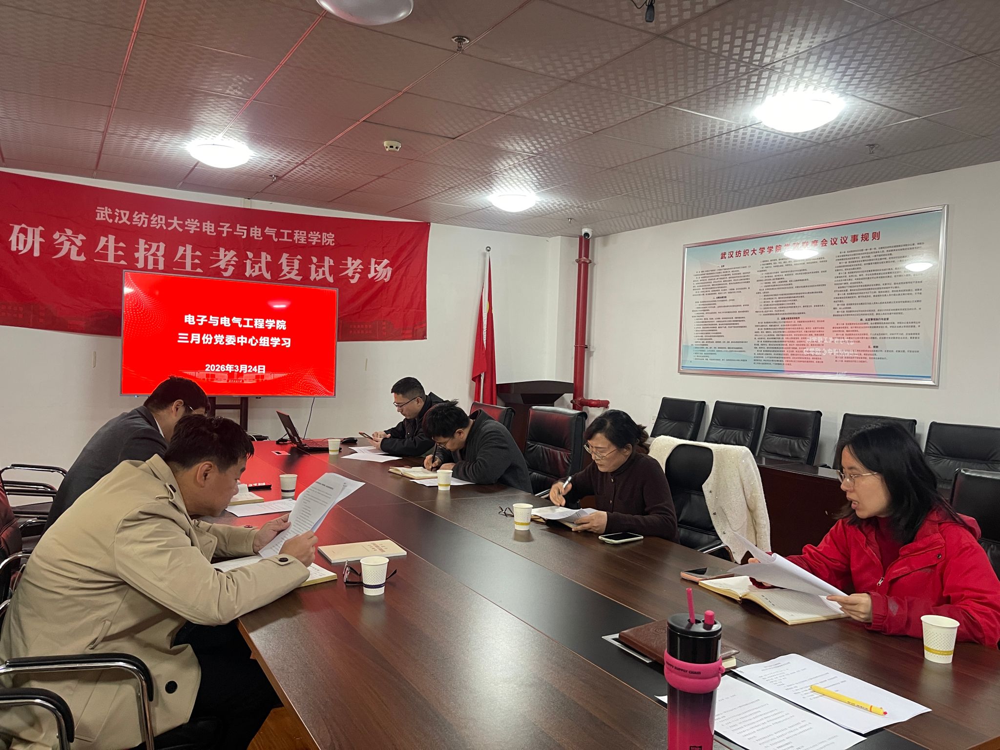 于崇真楼南楼5033会议室召开三月份中心组学习会,会议围绕“学习贯彻习近平总书记全国两会期间重要讲话精神和全国两会精神、树立和践行正确政绩观、推动天下娱乐