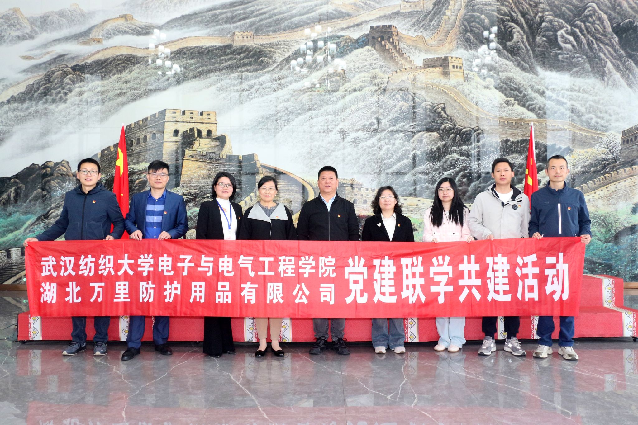 与湖北万里防护用品有限公司组织开展党建联学共建活动。仙桃市经信局党组成员、总工程师李燕子,武汉纺织大学副教授、仙桃市经信局副局长(挂职)廖海斌,湖北万里防护用品有限公司行政总监吴正勇,天下娱乐