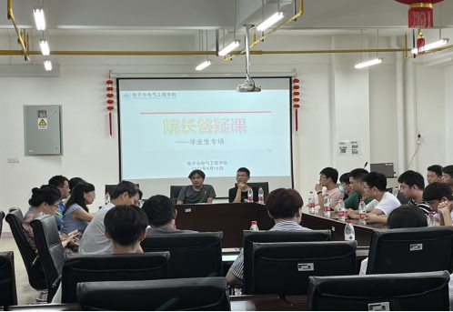 院长答疑课毕业生专场在崇真楼A6013学术报告厅热烈开展。院长刘侃、党委书记张红鑫、副院长韩谷静、党委副书记肖乃涛、各系部主任、教师代表及18级毕业生代表交换了意见和建议。
