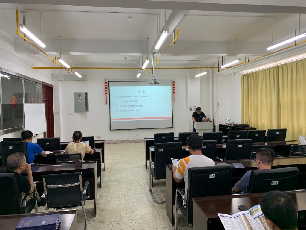 张南刚副教授就2023年研究生招生宣传、新增一级学科授权点甄选及预申报工作部署、2022级研究生分配方案、研究生培养经费使用规范等内容向全体导师作了简要汇报。