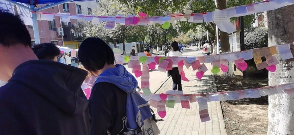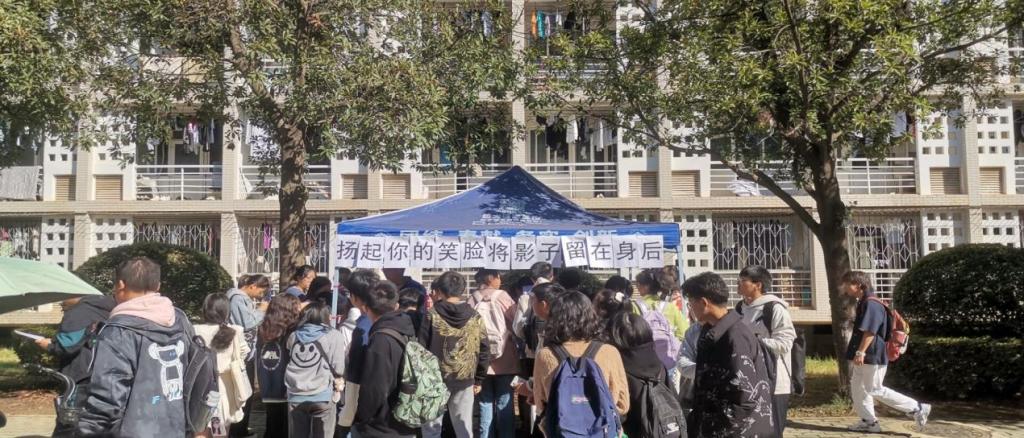上午9点,两项特色活动正式开始。一是“树洞信箱”心情寄存点,活动准备了树洞信箱以及精美信封,让参加的同学们将自己最近的烦心事或者遇到的困难写在信封里,并在活动结束之前投入信箱,后期会有工作人员给同学们回信。二是分享生活中的小确幸,参与的同学们会在便利贴上写下最近开心的事情并将其贴在帐篷周围的红丝带上,将快乐的事情传播给其他同学。活动期间,现场气氛活跃,同学们积极参与,写下了自己的开心事或者烦心事。10月11日下午2点,活动圆满结束。