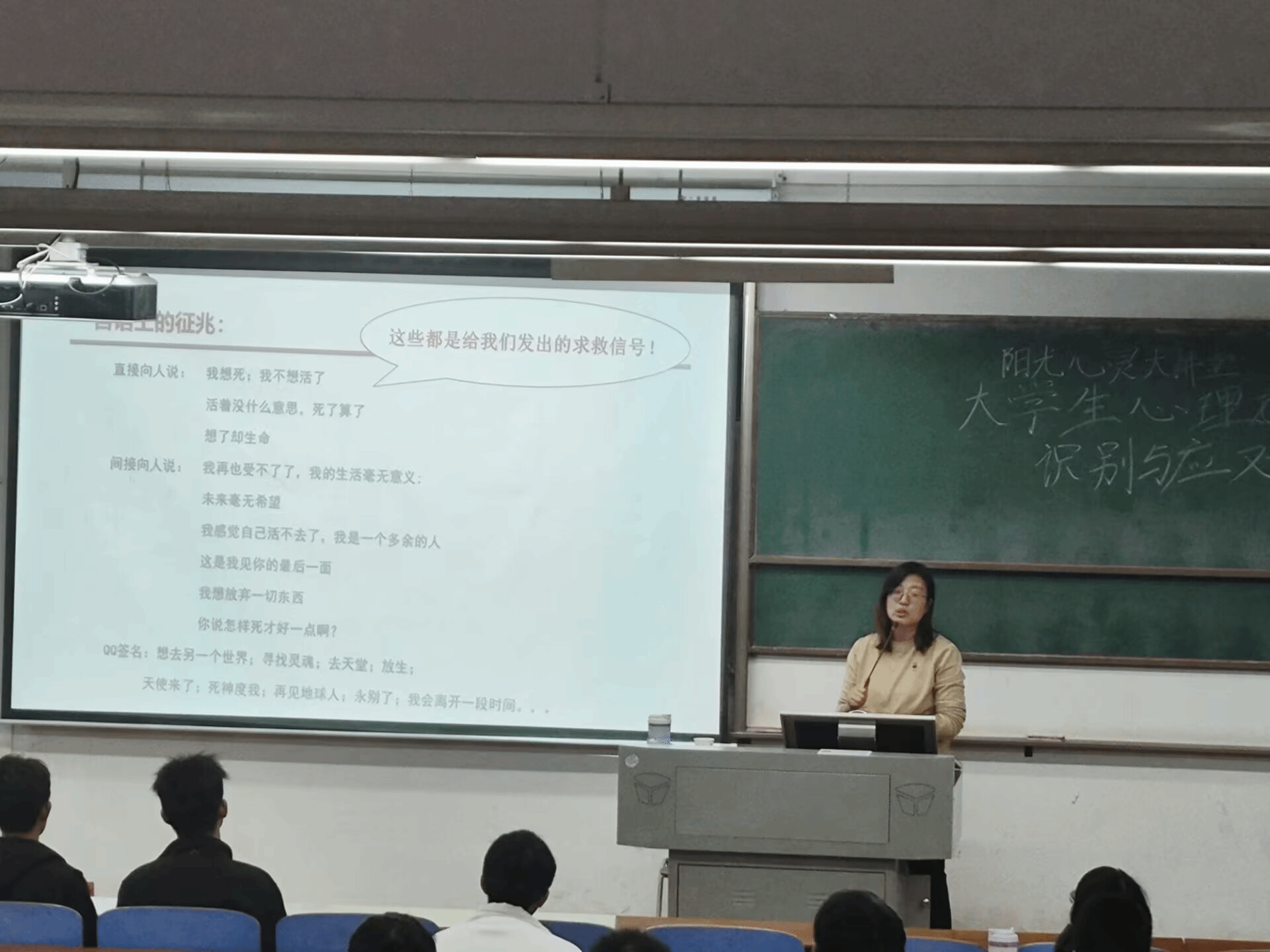 开展主题为“大学生心理危机识别与应对”的心理讲座,讲座由华中农业大学心理健康教育中心崔凤华老师主讲,天下娱乐