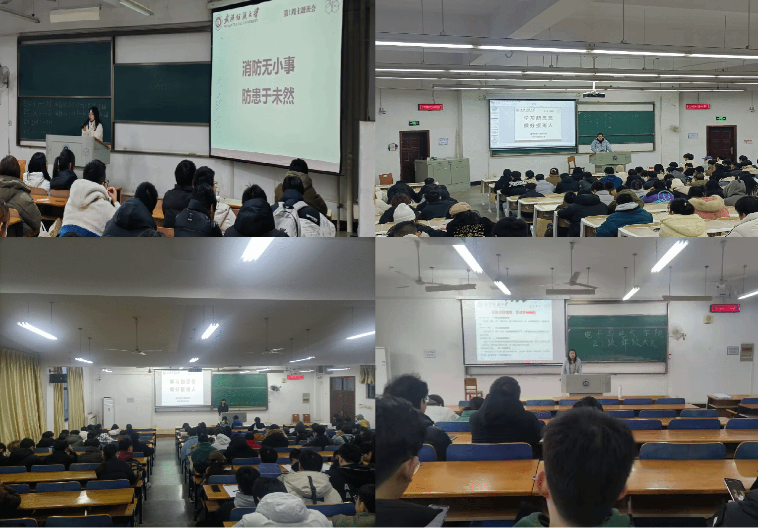 班会紧紧围绕寒假社会见闻、心理健康教育、日常管理规定等内容展开。会上,各班主任、辅导员首先传达了春季学期开学返校的相关工作安排,针对因事因病因交通暂缓返校学生,进行家校互联确认。对已返校学生,则了解学生思想及行为动态,掌握学生在校在宿情况,引导学生调整作息,调适心理状态,尽快投入新学期的学习生活;其次,班会开展人身财产安全、消防用电安全、网络舆情教育等多角度安全教育,强调安全稳定是一切工作有序进行的保障,要求学生筑牢个人安全防线,提高辨别能力,遇到问题及时与辅导员沟通,并组织学生集中签订《开学安全责任告知书》;毕业班辅导员还安排部署了就业工作,再次精准动员推荐未就业学生就业,要求未就业学生按时参加线下宣讲会,摸排动员考研不理想学生尽快落实就业去向;最后,各班级对本学期班级活动计划、班级网格化管理等工作做了细致要求和安排。