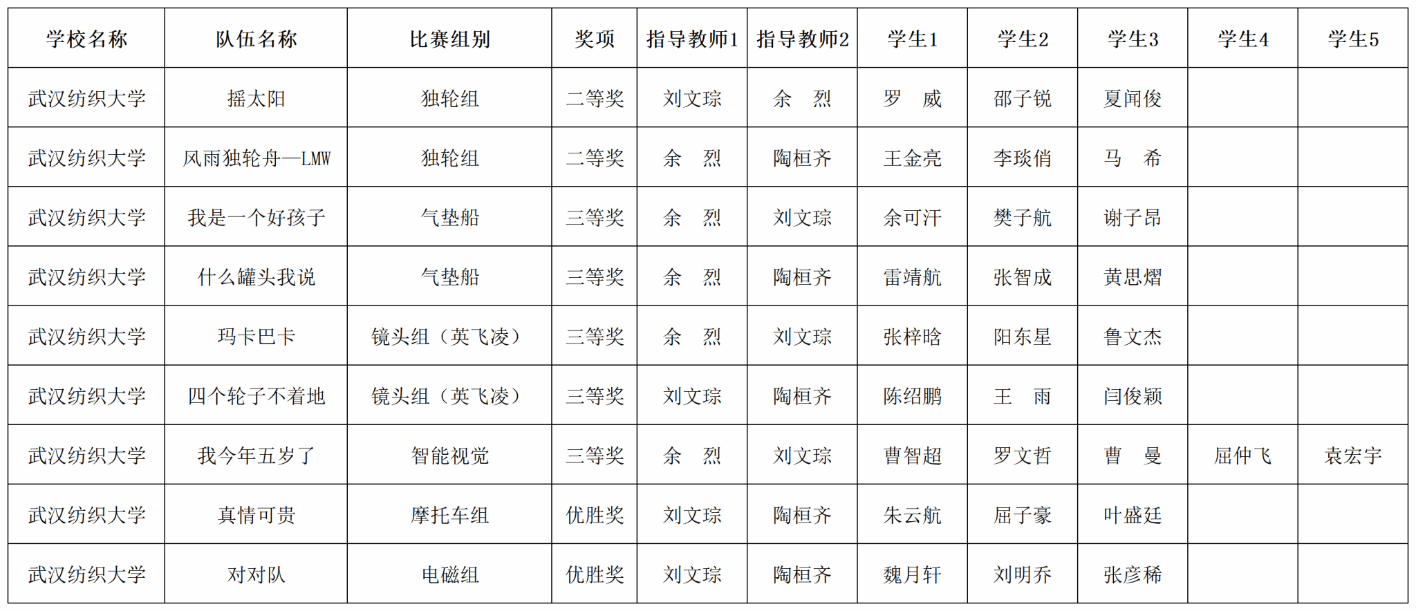 由刘文琮、余烈老师带领,共九支队伍参加此次比赛。经过激烈角逐,参赛队伍在此赛项中搏出了风采,获得华南赛区独轮车组两项二等奖,镜头组两项三等奖,气垫船两项三等奖,智能视觉组三等奖,摩托车组优胜奖,电磁组优胜奖。