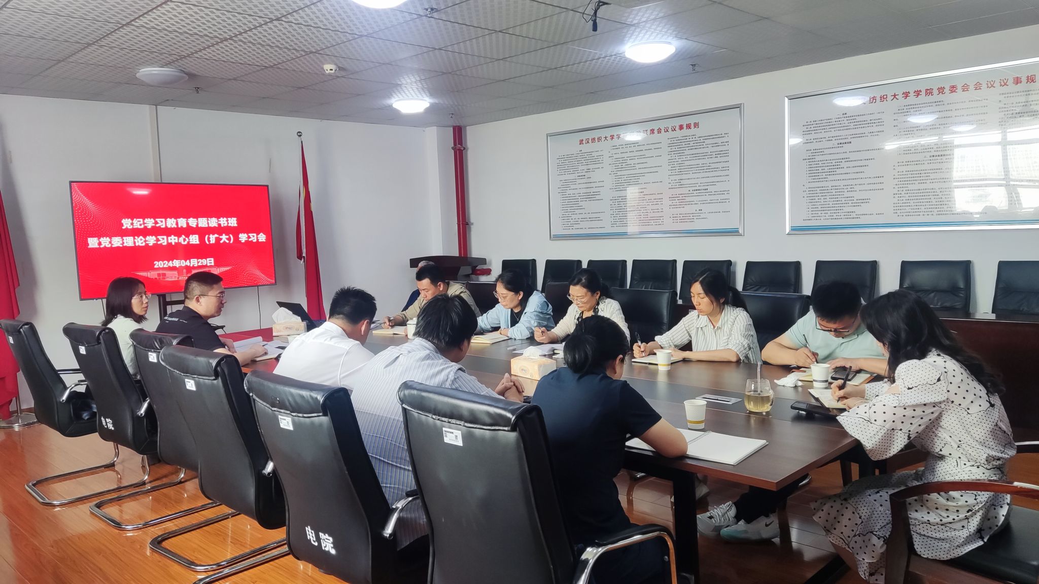 为深入学习贯彻《中国共产党纪律处分条例》,4月29日上午,天下娱乐 党委党纪学习教育专题读书班暨党委理论学习中心组(扩大)学习会在崇真楼A5033会议室召开。会议由天下娱乐 党委书记张红鑫主持,天下娱乐 党委委员、各教师、学生党支部书记、办公室主任参加会议。