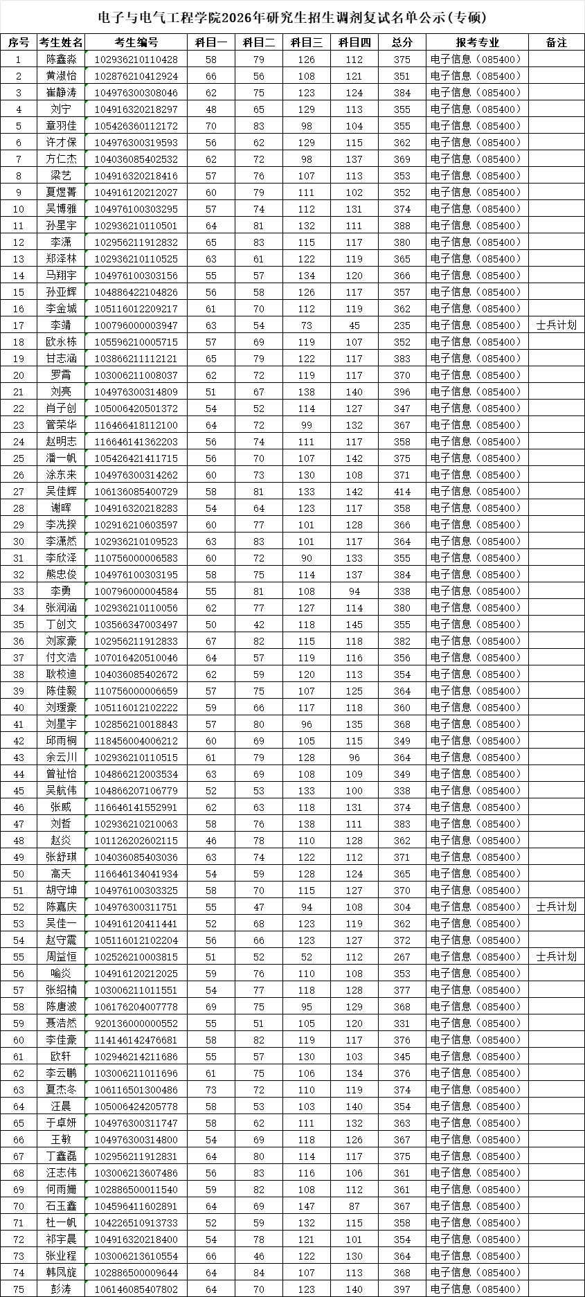天下娱乐 2026年研究生招生调剂复试名单公示(专硕)