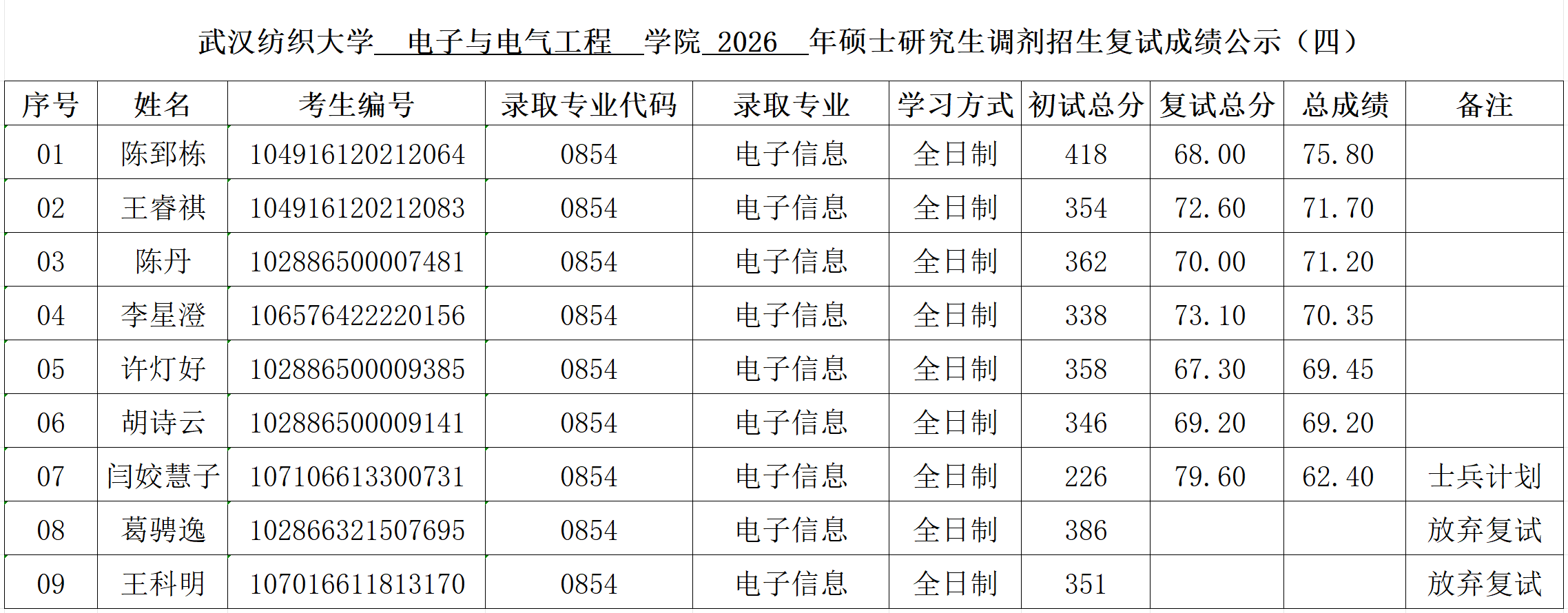 天下娱乐(中国)唯一官方网站 2026年硕士研究生调剂招生复试成绩公示(四)