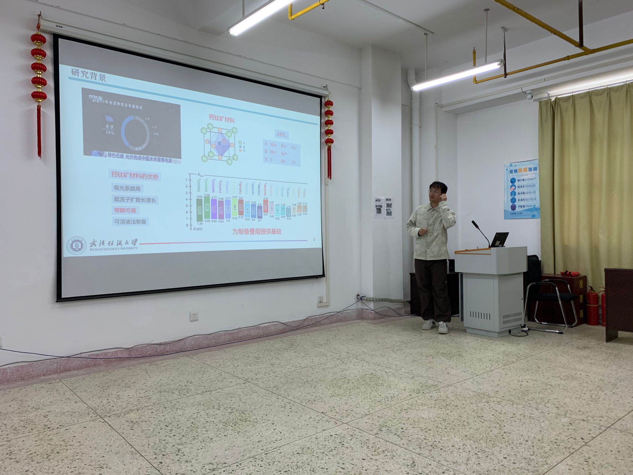 王晨博士作了题为“全钙钛矿叠层太阳能电池中宽带隙钙钛矿的溴含量管理”的报告,项目以全钙钛矿叠层电池为研究对象,重点解决宽带隙钙钛矿中的光物理问题,旨在解决降低宽带隙钙钛矿的溴含量过高问题,以实现更高效稳定的宽带隙钙钛矿及全钙钛矿叠层电池。在交流讨论环节中,王晨博士与在座老师围绕降低溴含量的实现方法和关键科学问题等展开了深入讨论。