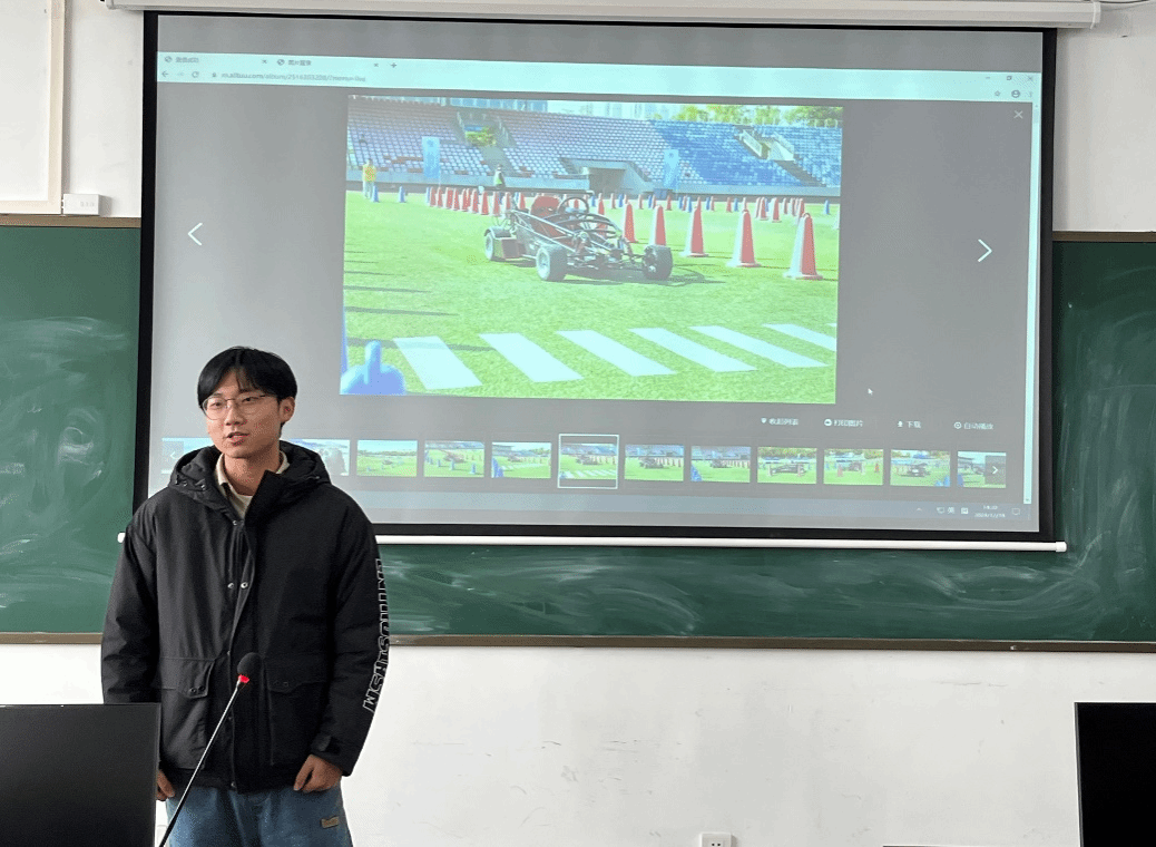 论坛的第一位分享人是卢宏立学长。他回顾了自己参与智能汽车大赛的经历,重点讲解了小车设计与算法优化的关键技术。卢学长强调,赛前的充分准备和多次实验是取得优异成绩的关键。他鼓励同学们要将理论与实践结合起来,通过不断优化算法,提高小车的导航精度与避障能力。