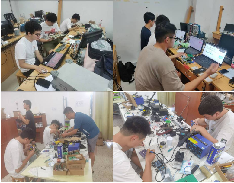 参赛团队5月底开始组织学生开展训练,7月12日开展暑期集中实训。正式比赛期间恰逢江夏区疫情管控,竞赛指导教师田裕康、刘文琮、郭旻、李劲等指导教师毅然“逆行”到阳光校区实验室为学生竞赛保驾护航,鼓励参赛学生不畏酷暑,奋勇拼搏。
