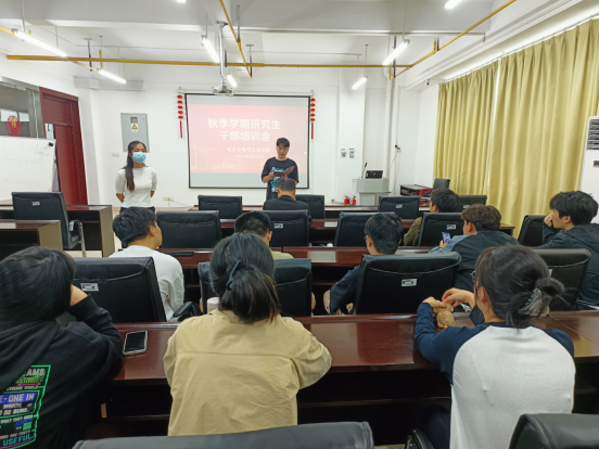 于2025年9月25日在崇真楼南楼6013召开秋季学期研究生干部培训会。全体研究生干部参加会议,会议由研究生辅导员主持。