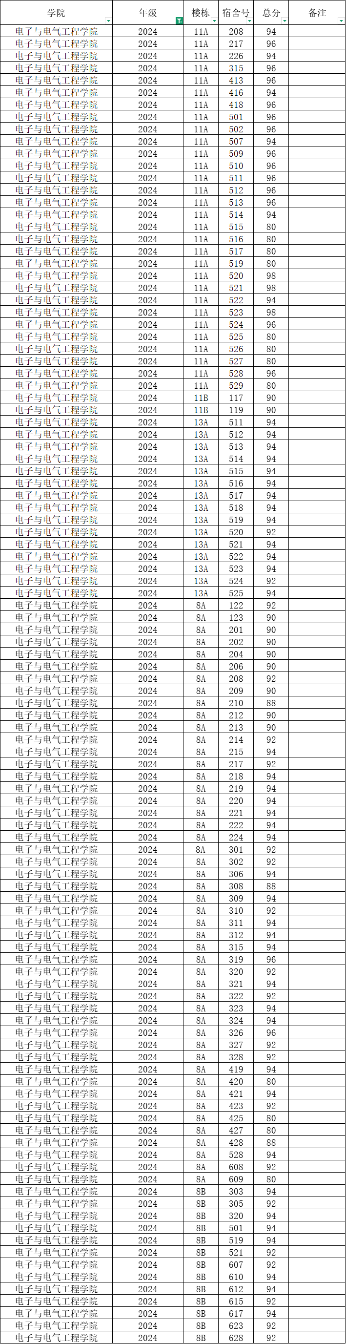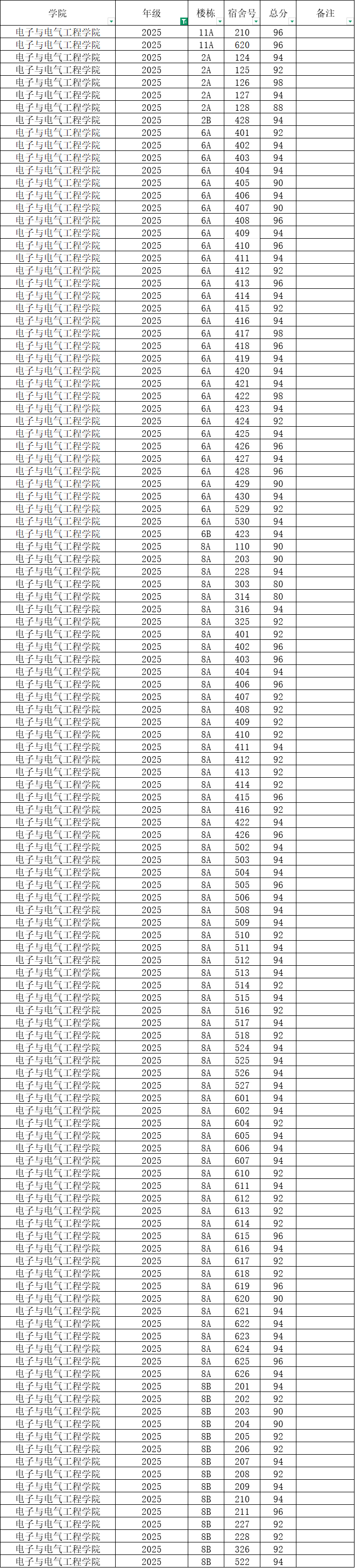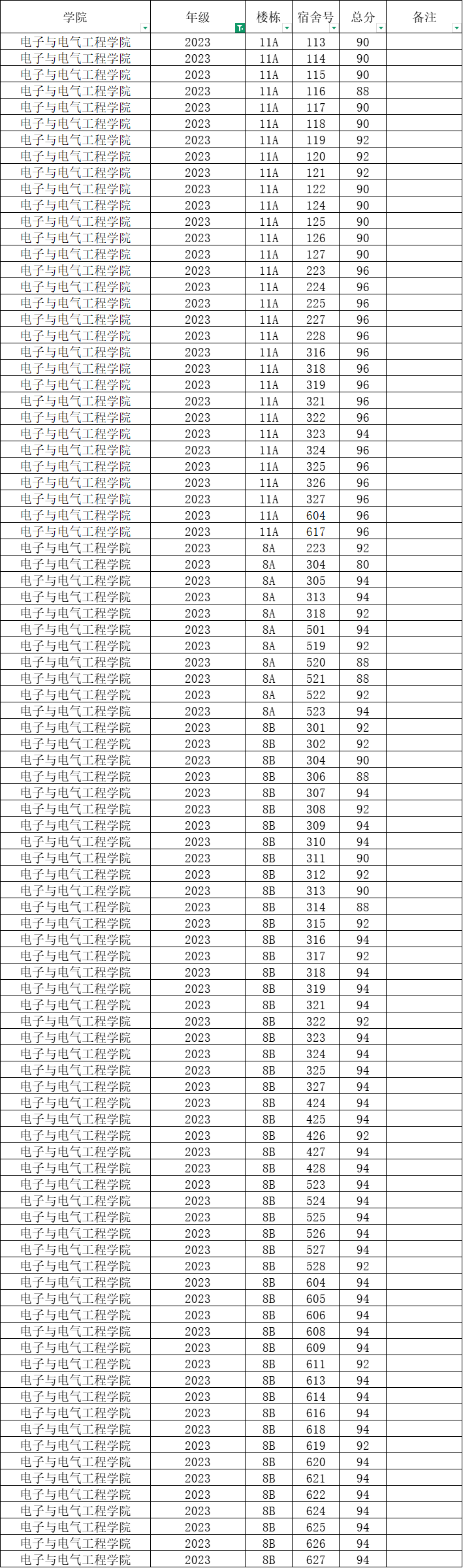 根据统一安排,现将天下娱乐 本学期第7周寝室公检情况公布如下