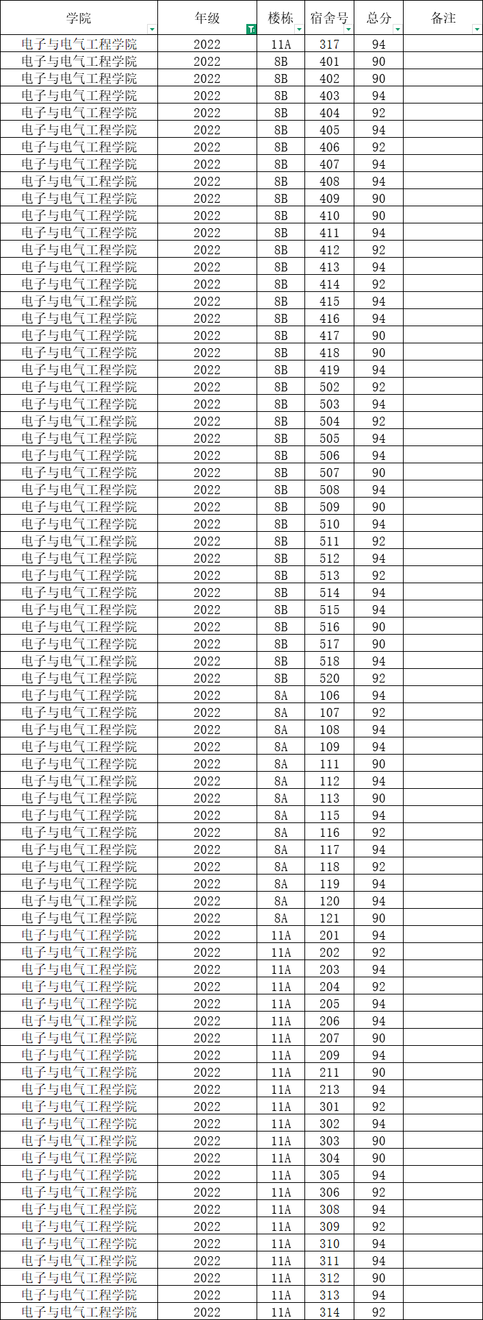 各班级,各寝室: