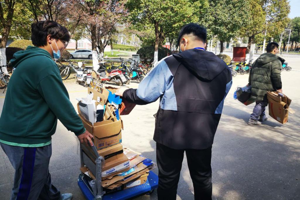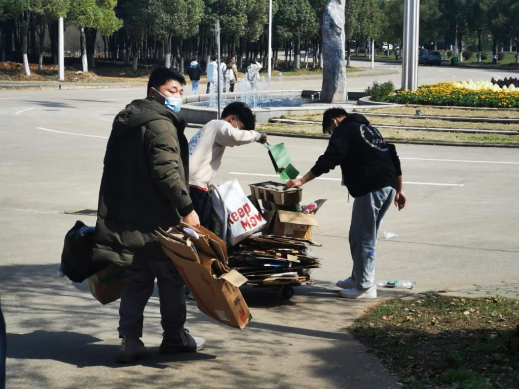 楼8栋、11栋宿舍,进行纸盒回收的活动。