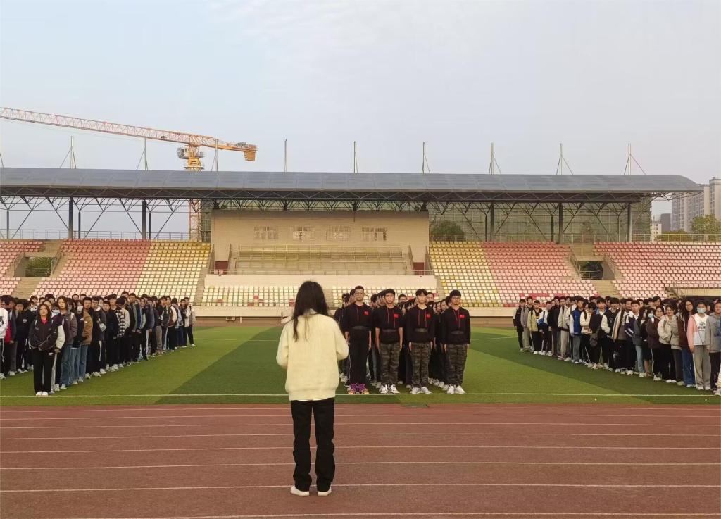 应国旗护卫队邀请,辅导员老师带领高年级学生代表、大一全体学生参加升旗仪式。