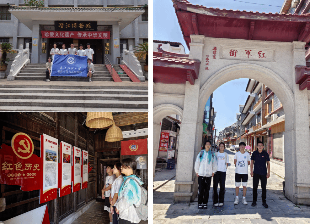 实践队先后来到潜江市博物馆、烈士陵园、熊口镇“红军街”以及渔洋镇拖船埠村进行红色教育学习。让同学们进一步了解了潜江人民在各个历史时期为中国革命和建设所做出的巨大贡献。同学们参观了红二军团部及红三军军部旧址等,团队师生共同缅怀老一辈革命家贺龙等率领的红二军团及红三军、周逸群等率领的红六军在大革命时期反"围剿"艰难革命斗争中的丰功伟绩,接受革命传统教育;在拖船埠,同学们还参观了革命旧址和钱瑛纪念馆。拖船埠是著名的革命老区村,这里诞生了潜江革命史上第一批共产党员、第一个党小组、第一个农民协会、第一所列宁小学、第一个沔西区苏维埃政府、第一个潜江县苏维埃政府、第一个中共潜江县委、第一支正规军工农革命第五军等“八个第一”。通过寻访红色印记,让同学们深刻感悟社会主义革命的伟大精神,纷纷表示要做红色基因的传承人,以青春行动赓续红色血脉。