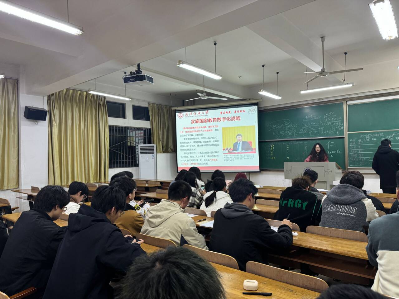 班会上,辅导员率先带领同学们深入学习 2025 年全国两会中关于教育的重要精神。他着重强调,教育数字化已然成为未来教育发展的核心方向,是实现教育现代化的重要突破口与必由之路。这一战略的推进,将为同学们的学习带来更多元化的资源、更高效的学习模式,助力大家在知识的海洋中更加自由地遨游。随后,班会的焦点聚焦于武汉纺织大学新校训的正式公布与启用。新校训 “崇真尚美,笃行致远”,短短八字,却凝聚着学校深厚的历史底蕴与鲜明的时代精神。“崇真尚美” 倡导同学们对真理不懈追求,对美好事物满怀崇尚,这充分体现了学校对学术严谨精神的坚守以及对人文情怀培育的重视;“笃行致远” 则激励同学们脚踏实地、一步一个脚印,在学习与实践的道路上持之以恒、奋勇向前,不断向着卓越的目标迈进,凭借坚定的行动去实现远大的理想。