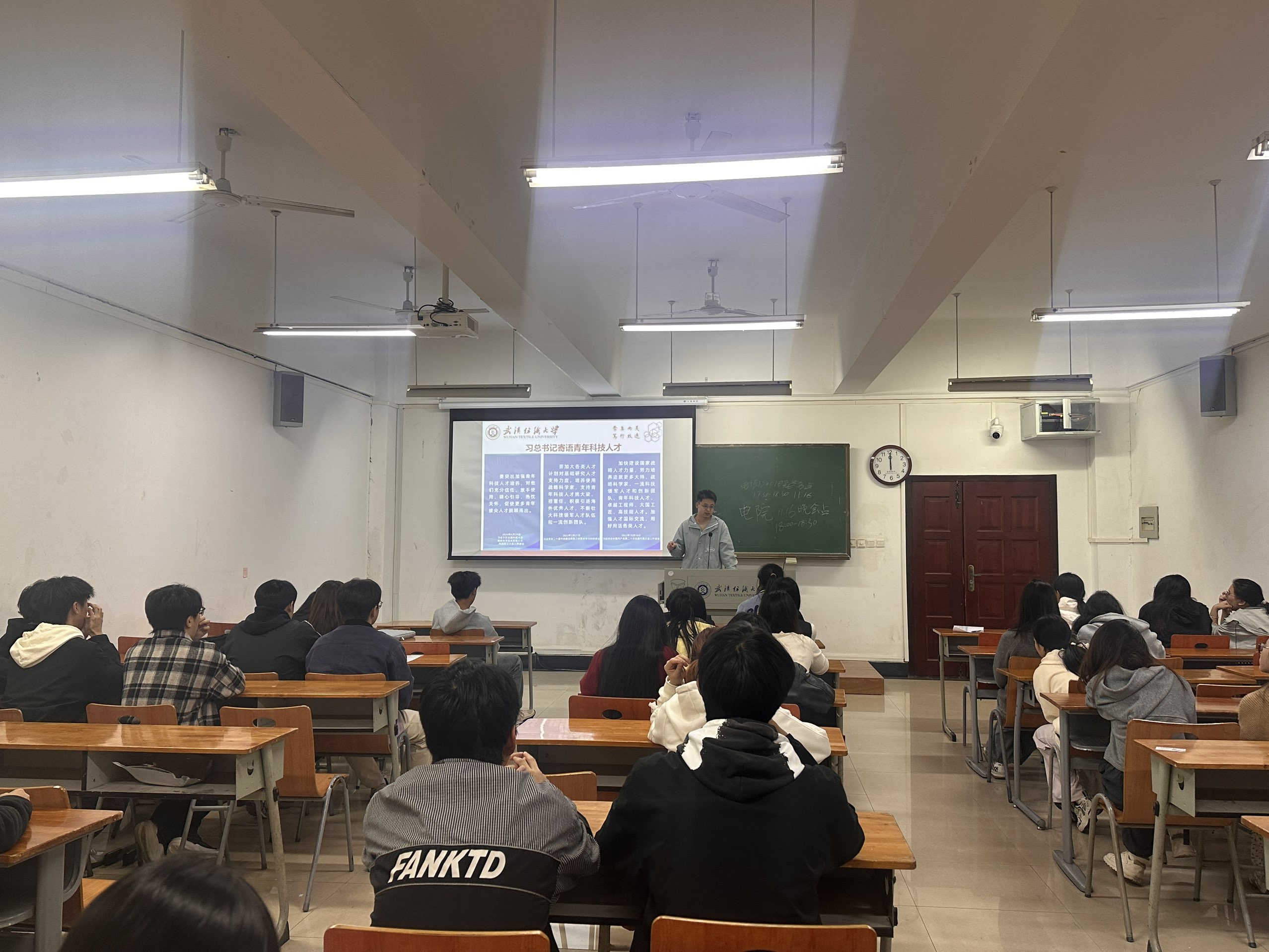 班会伊始,辅导员强调了青年在国家科技自立自强中的关键作用,让同学们深刻领会“挑大梁、担重任”的青春号召。随后,班会介绍了《2024全国普通高校大学生竞赛分析报告》中的84项重点竞赛目录,详细解读了“互联网+”、“挑战杯”等核心赛事的平台价值与参赛路径,鼓励大家以竞赛为载体锤炼创新实践能力。会上还重点分享了我校在第十九届“挑战杯”全国大学生课外学术科技作品竞赛中的优异成绩,通过金属-碳复合界面研究、热湿响应智能面料等获奖项目案例,展现了我校学子在科技创新、社会服务等领域的扎实成果与责任担当。