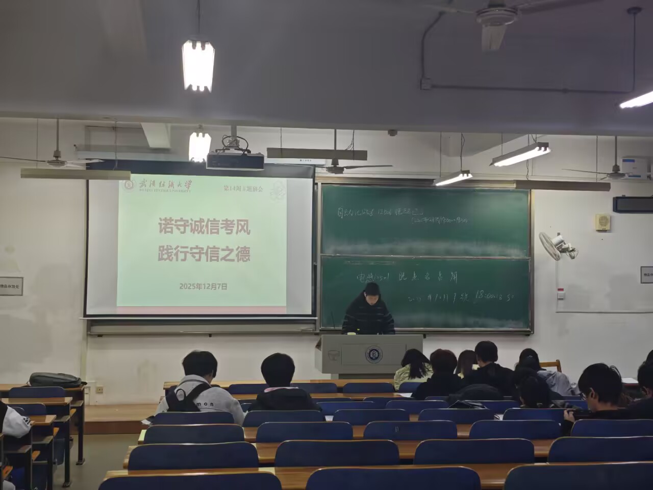 以“诺守诚信考风 践行守信之德”为主题召开第14周班会,引导学生树立诚信应考理念,明确考试纪律底线,为期末备考筑牢思想根基。