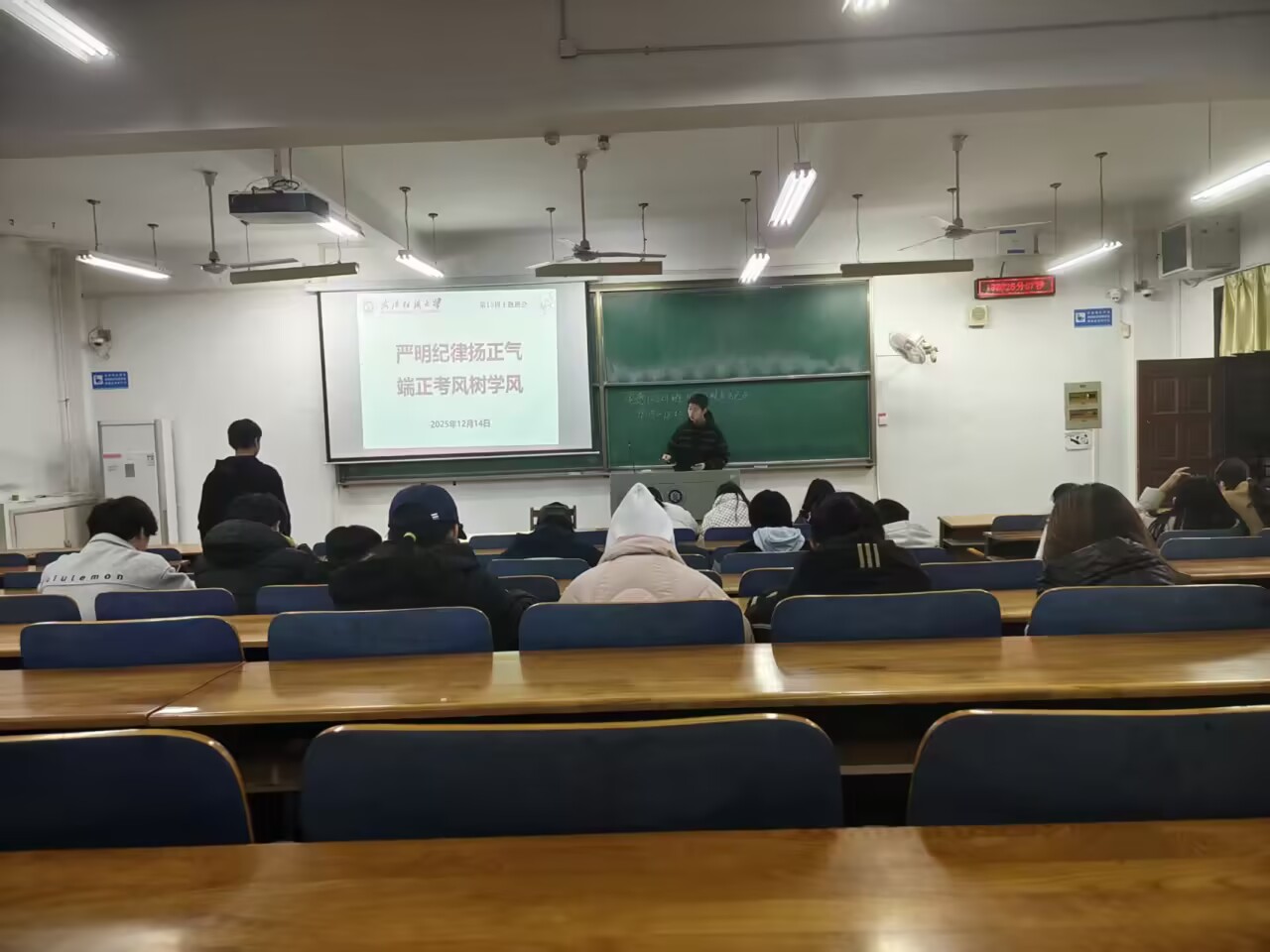 以第15周班会为契机,开展“严明纪律扬正气 端正考风树学风”主题教育活动,引导全体学子筑牢诚信应考思想防线,明确考试纪律红线,为期末及各类学业考试做好充分准备。