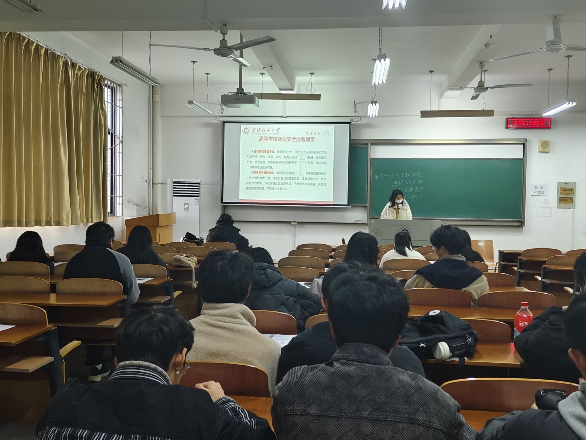 开展了“文明离校,平安假期”主题班会,旨在引领同学们践行文明离校,确保安全度过假期。班主任、副班主任和辅导员共同主持班会。此次班会紧密围绕省教育厅寒假安全温馨提示,强调了离校、交通、卫生、消防、心理、网络、兼职及孝敬长辈等方面的注意事项。
