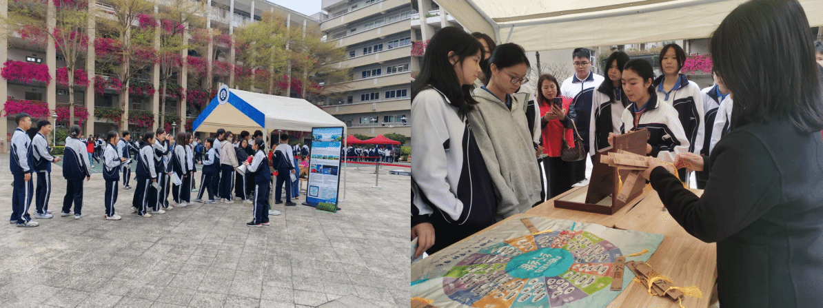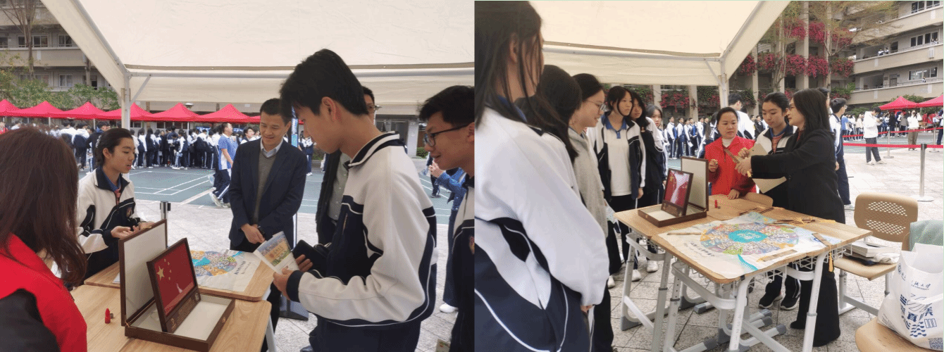 2024年5月,校党委副书记、副校长罗锦银带队赴深圳调研交流,学校在平冈中学建立了优质生源基地。此次受邀参加科普科创节,学校向平冈中学师生展示了“嫦娥六号”月面国旗、“武汉纺织大学纤维轮”、学校宣传片等,受到师生一致好评。