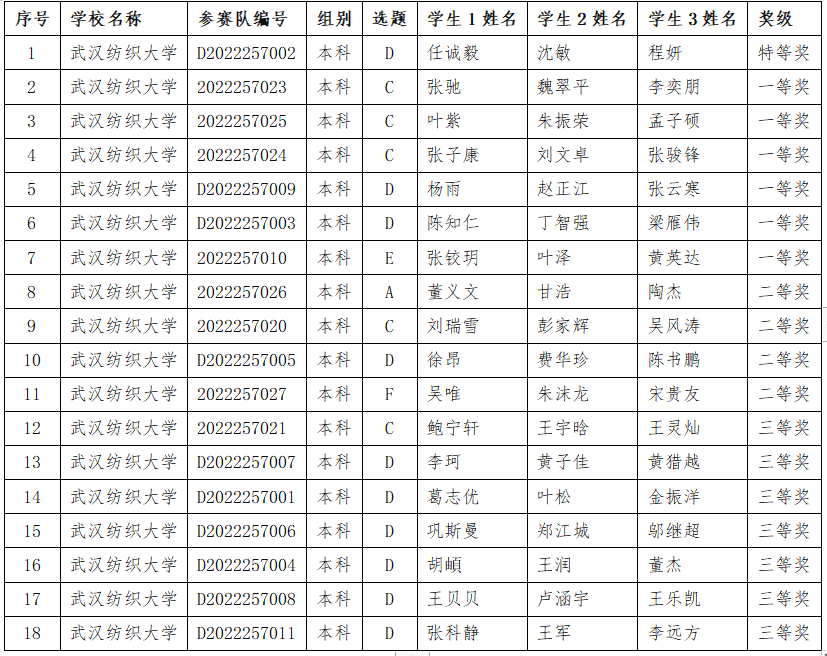 参赛团队共斩获18项奖励,其中省级特等奖1项、一等奖6项、二等奖4项、三等奖7项,获奖总数位居湖北省属高校前列。